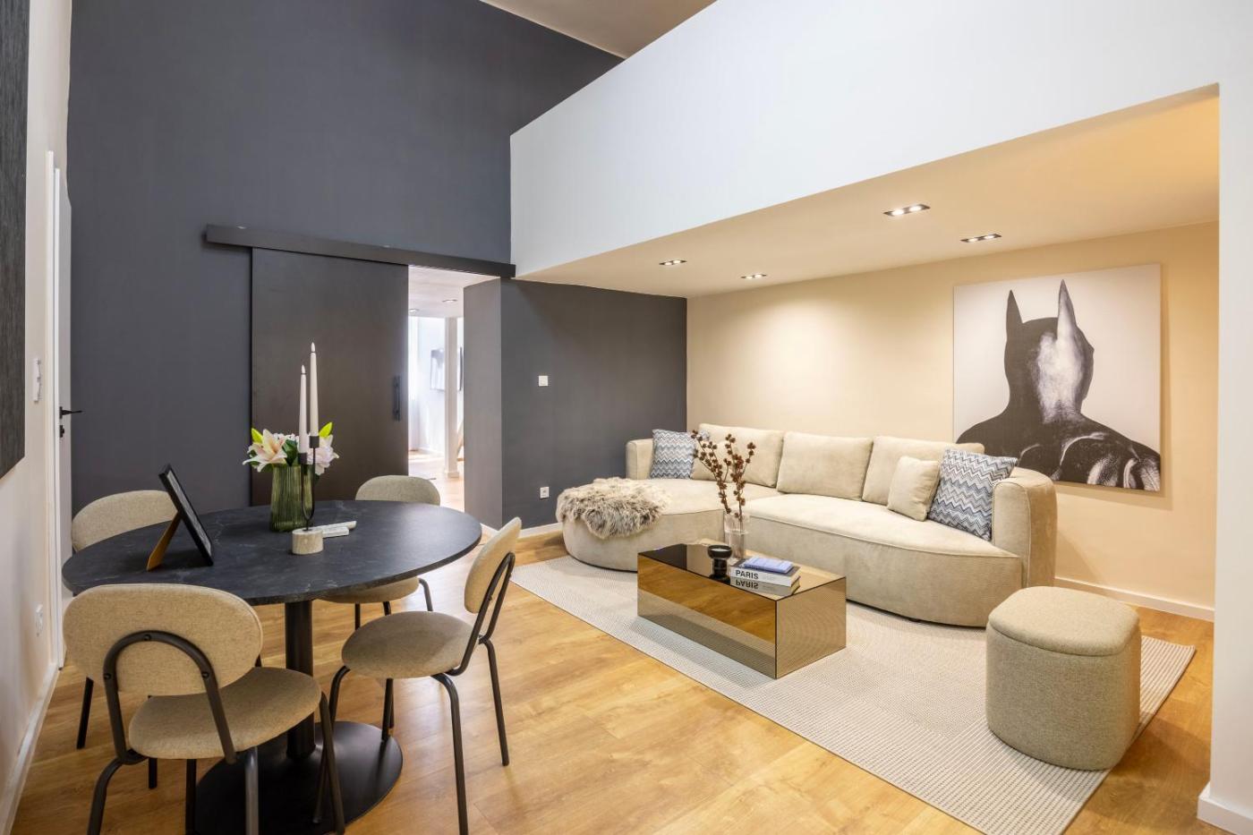 Two-Bedroom Deluxe Apartment. Featuring a private entrance, this apartment is comprised of 1 living room, 2 separate bedrooms and 1 bathroom with a shower and a hairdryer. In the kitchen, guests will find a stovetop, a refrigerator, a dishwasher and kitchenware. The apartment offers a washing machine, soundproof walls, a seating area, a flat-screen TV, as well as ancourtyard view. The unit offers 4 beds.