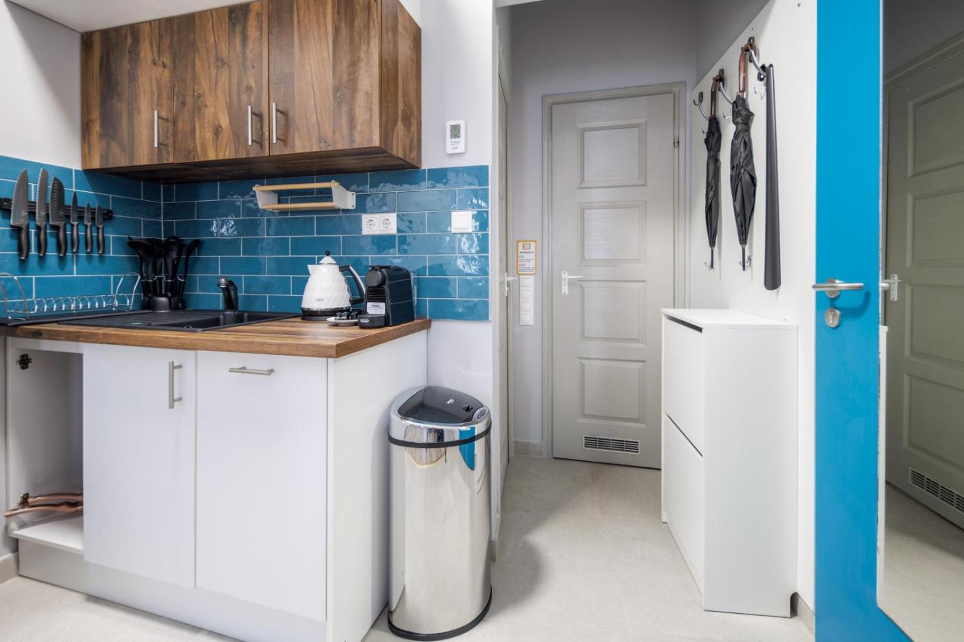 One-Bedroom Apartment. Featuring a private entrance, this air-conditioned apartment consists of a kitchenette, 1 bedroom and 1 bathroom with a shower and a hairdryer. In the well-fitted kitchenette, guests will find a stovetop, a refrigerator, a dishwasher and kitchenware. The apartment provides a washing machine, soundproof walls, a coffee machine, a wardrobe, as well as a flat-screen TV with streaming services. The unit offers 3 beds.