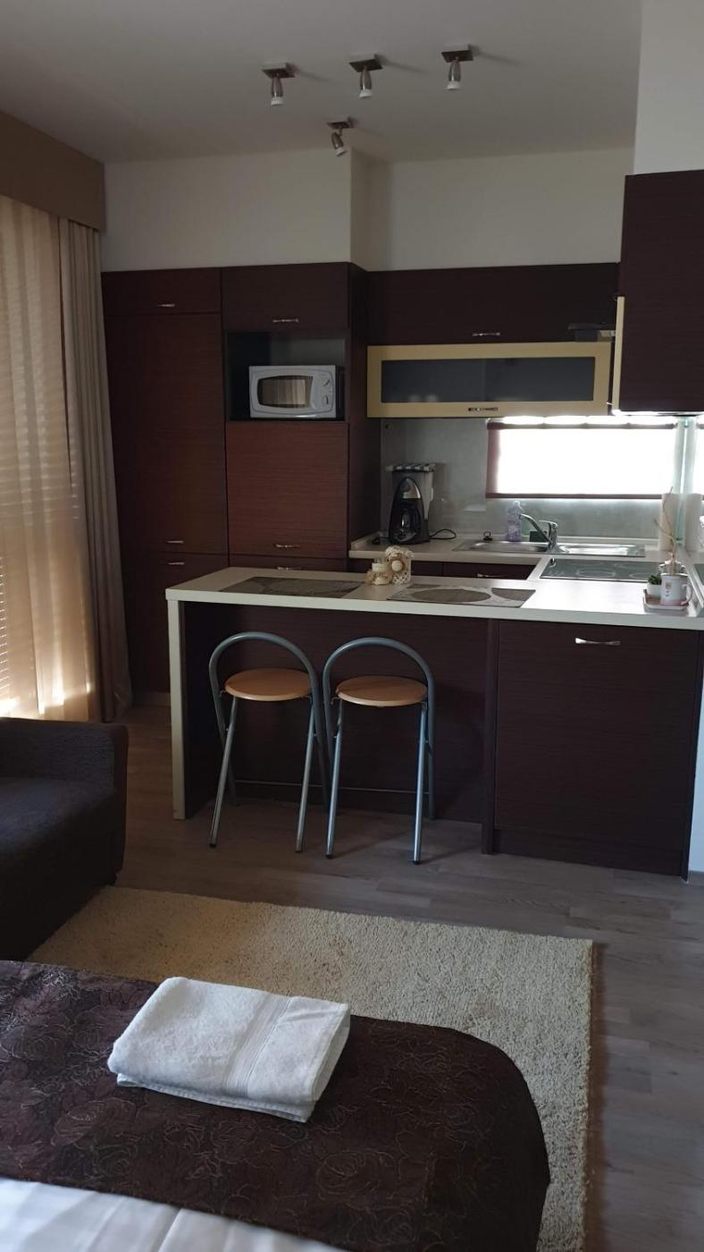 Studio Apartment. Boasting a private entrance, this air-conditioned apartment includes a kitchen, 1 bedroom and 1 bathroom with a shower and a hairdryer. Meals can be prepared in the well-fitted kitchen, which is fitted with a stovetop, a refrigerator, kitchenware and an oven. This apartment has a tea and coffee maker, a dining area, a flat-screen TV and a balcony. The unit has 1 bed. ;