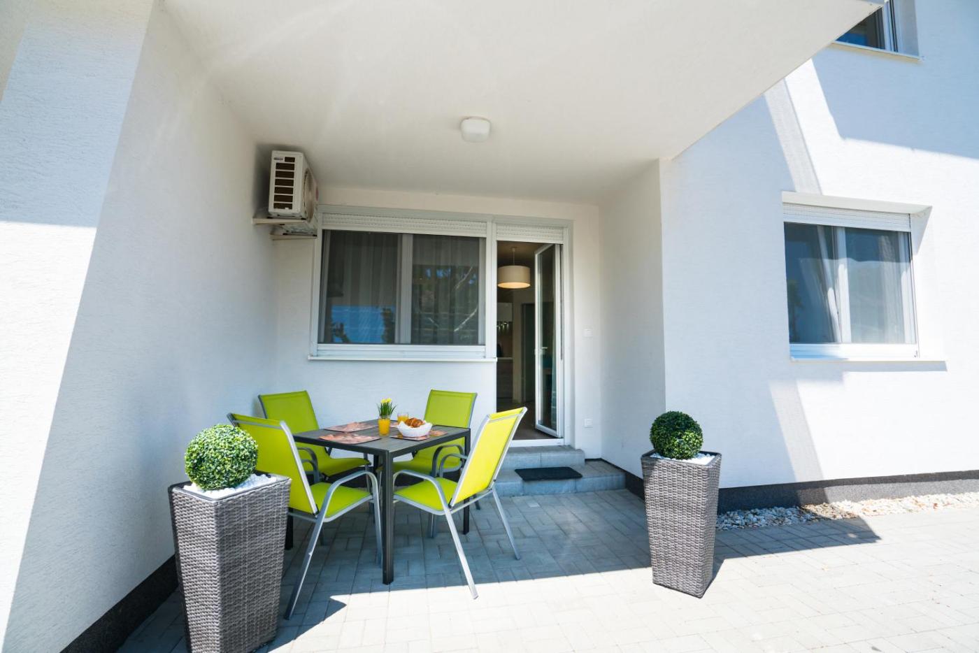 Deluxe Apartment. This apartments standout feature is the private pool. Boasting a private entrance, this air-conditioned apartment includes 1 living room, 2 separate bedrooms and 1 bathroom with a bath and a hairdryer. Guests will find a stovetop, a refrigerator, a dishwasher and kitchenware in the kitchen. The apartment also features a barbecue. Featuring a terrace with garden views, this apartment also offers a washing machine and a flat-screen TV with cable channels. The unit has 3 beds.