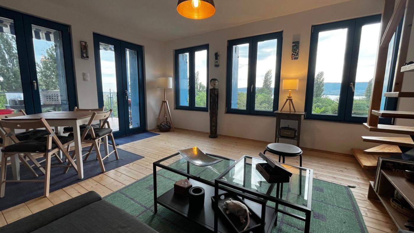 The holiday home consists of 3 bedrooms, a living room, a fully equipped kitchen with an oven and a coffee machine, and 1 bathroom with a walk-in shower and a hair dryer. Guests can take in the views of the lake from the balcony, which also has outdoor furniture. There is also a seating area and a fireplace.